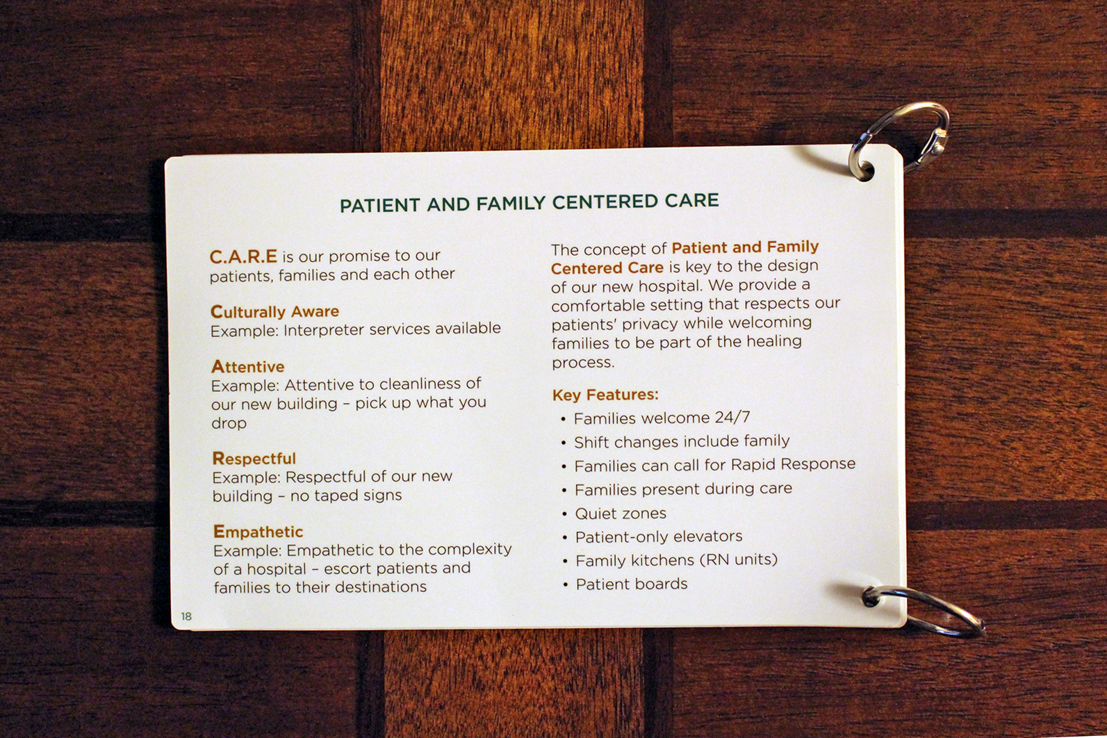 A 20-page wayfinding ring card set designed for employees and medical staff to assist them during orientation and transition to their new hospital and medical center, easy to use and carry.