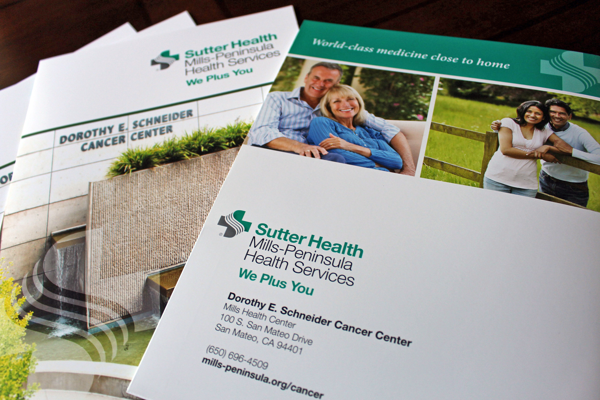 A 2-pocket presentation folder for the Mills-Peninsula Health Services Dorothy E. Schneider Cancer Center designed for physicians and patients.