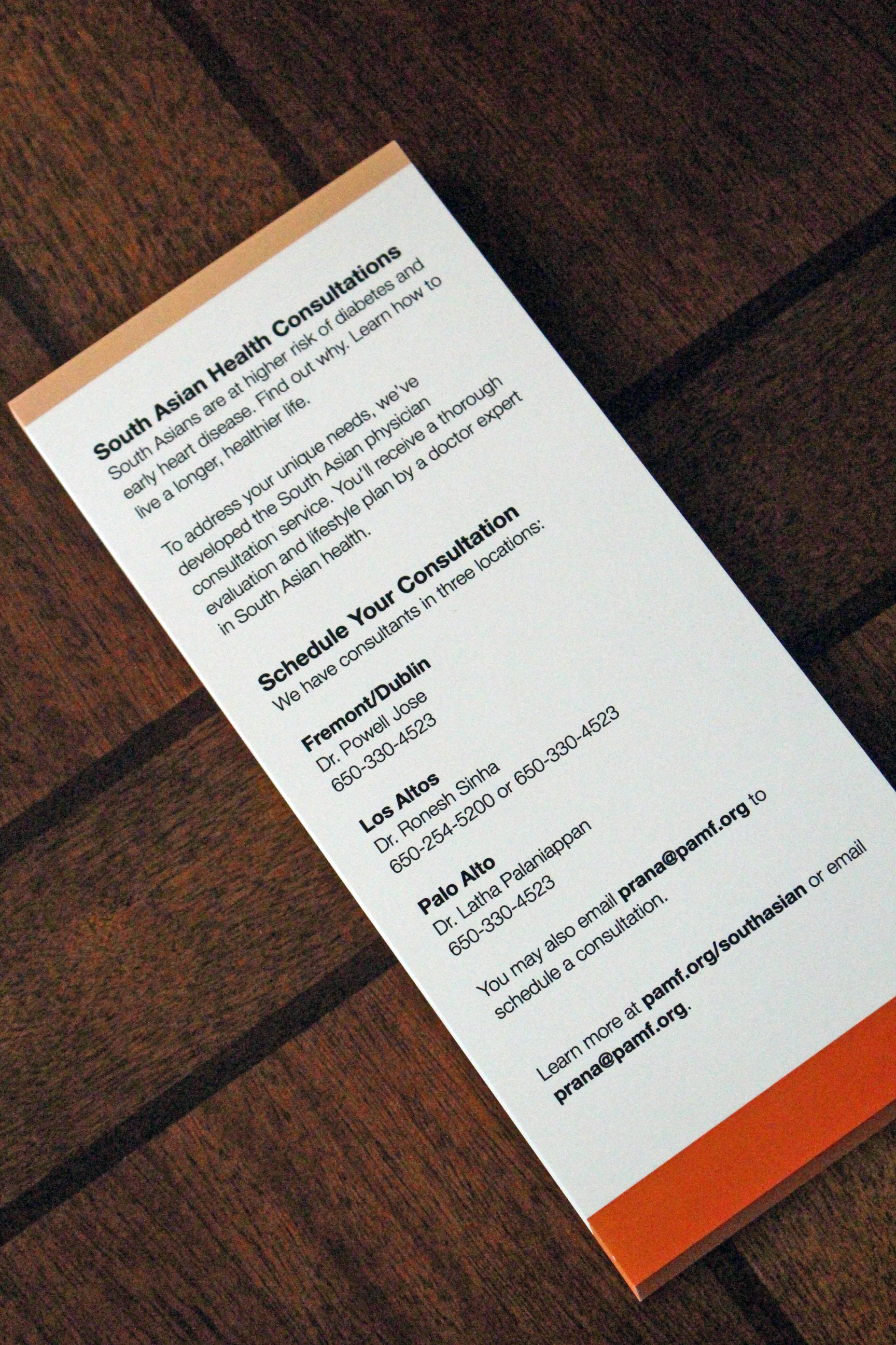 PAMF South Asian Health Rack Card