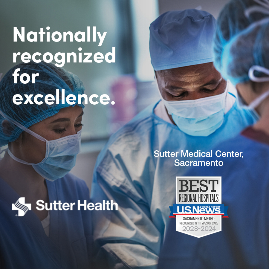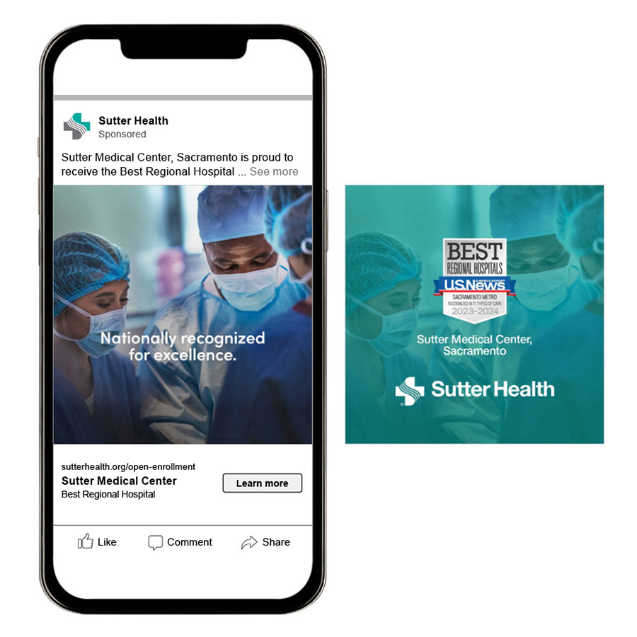 Sutter Medical Center Sacramento advertising its US News & World Report "Best of Awards", campaign included out of home ads (digital and print) as well as paid social media ads.