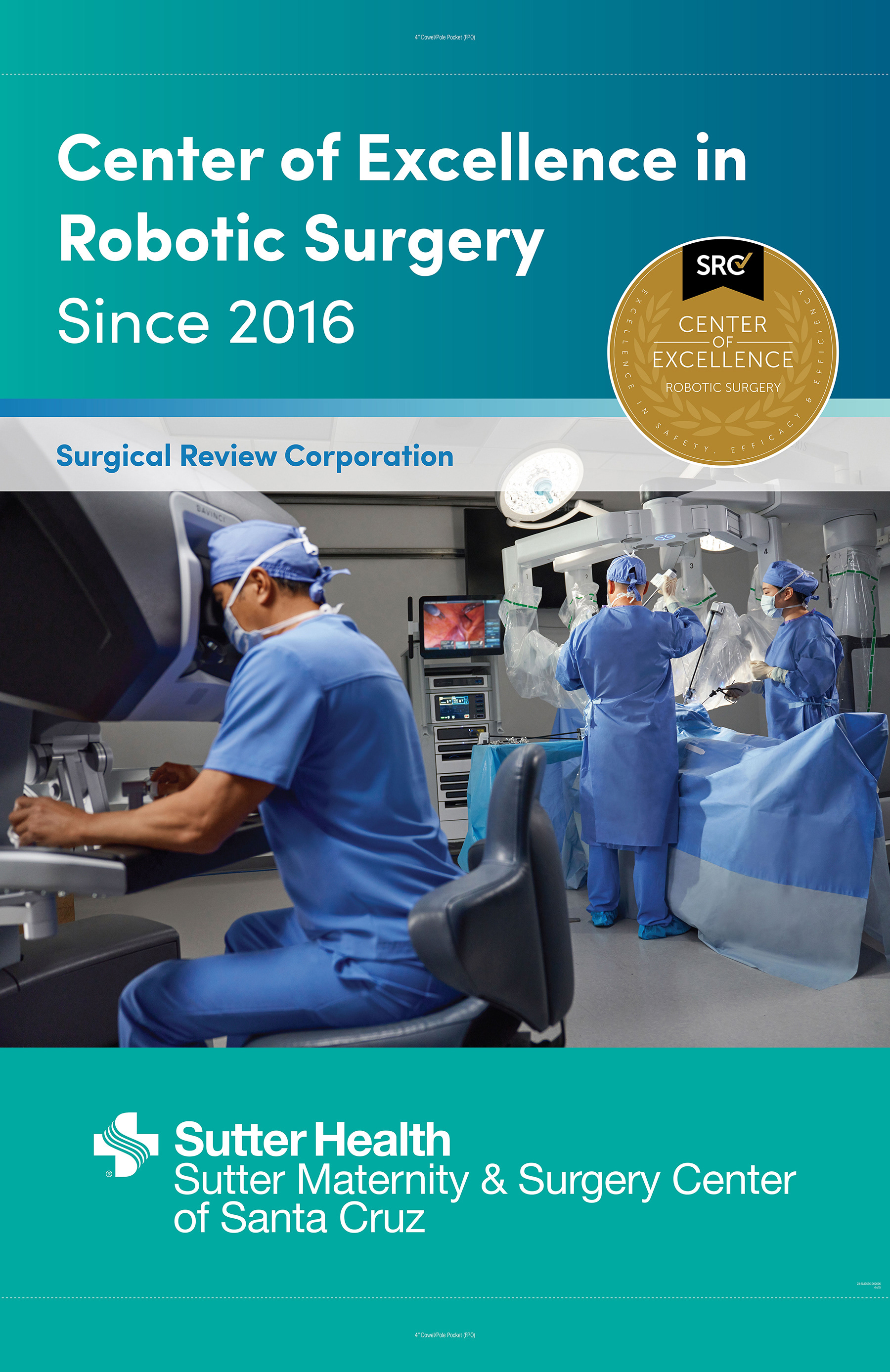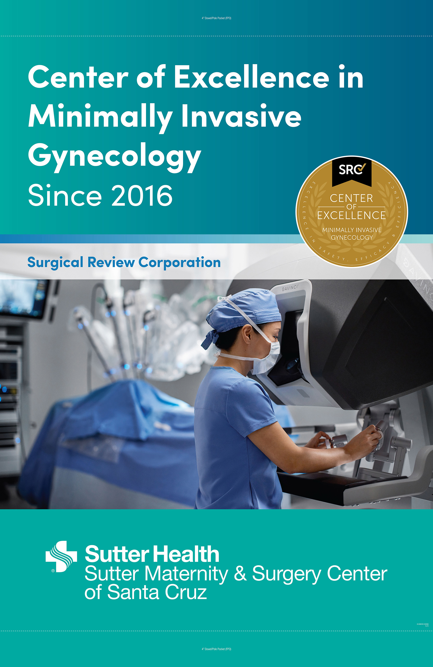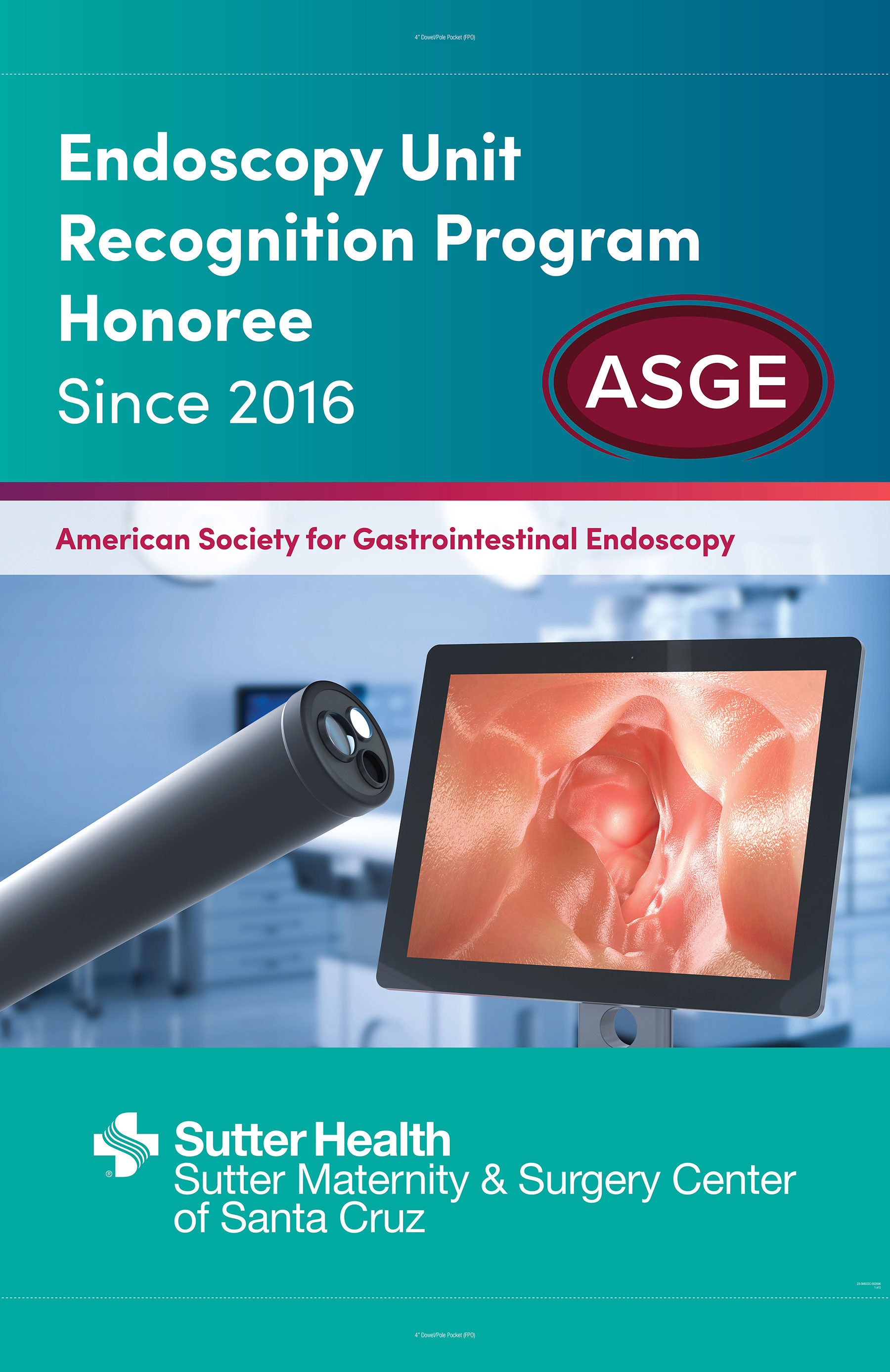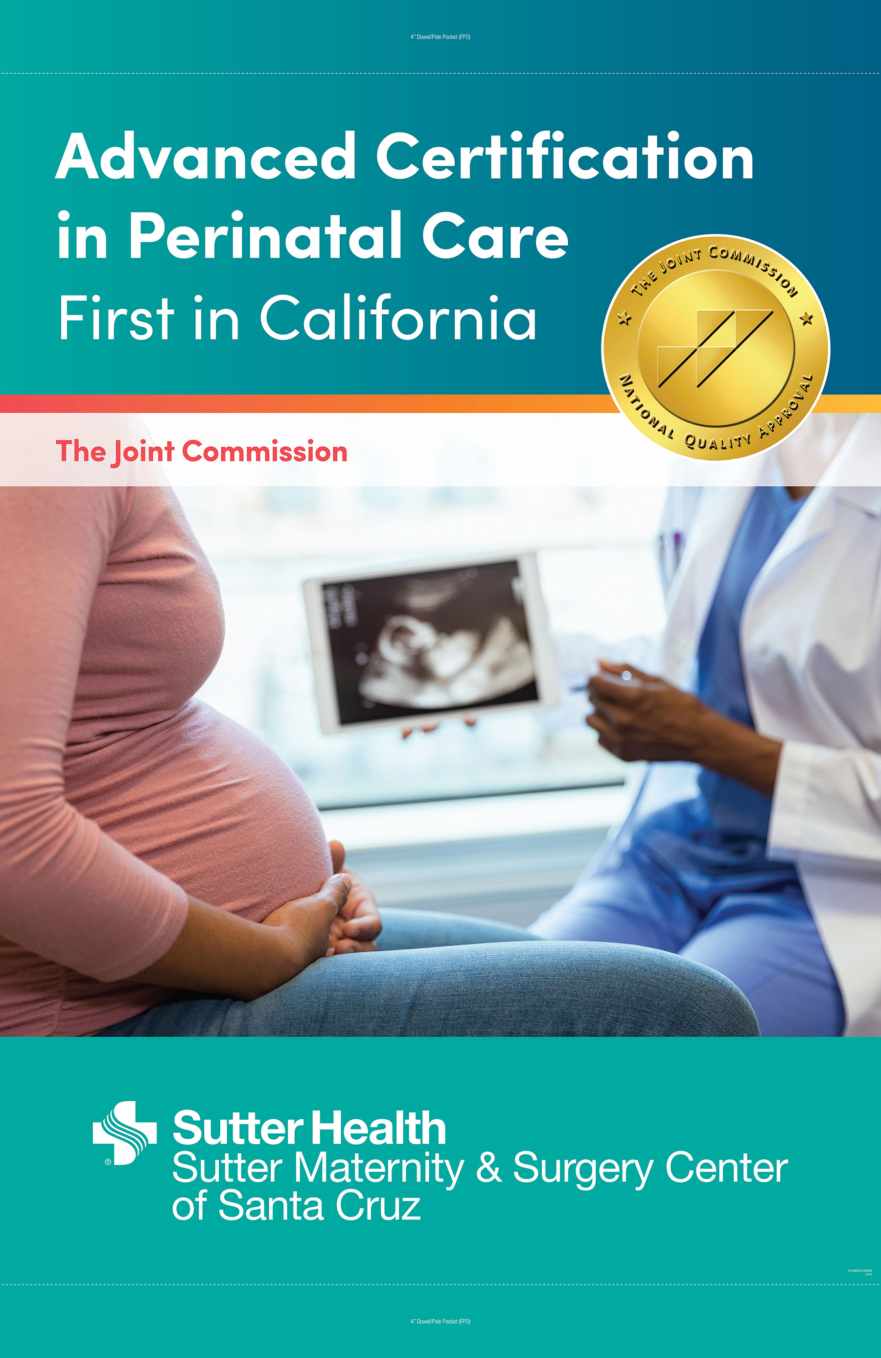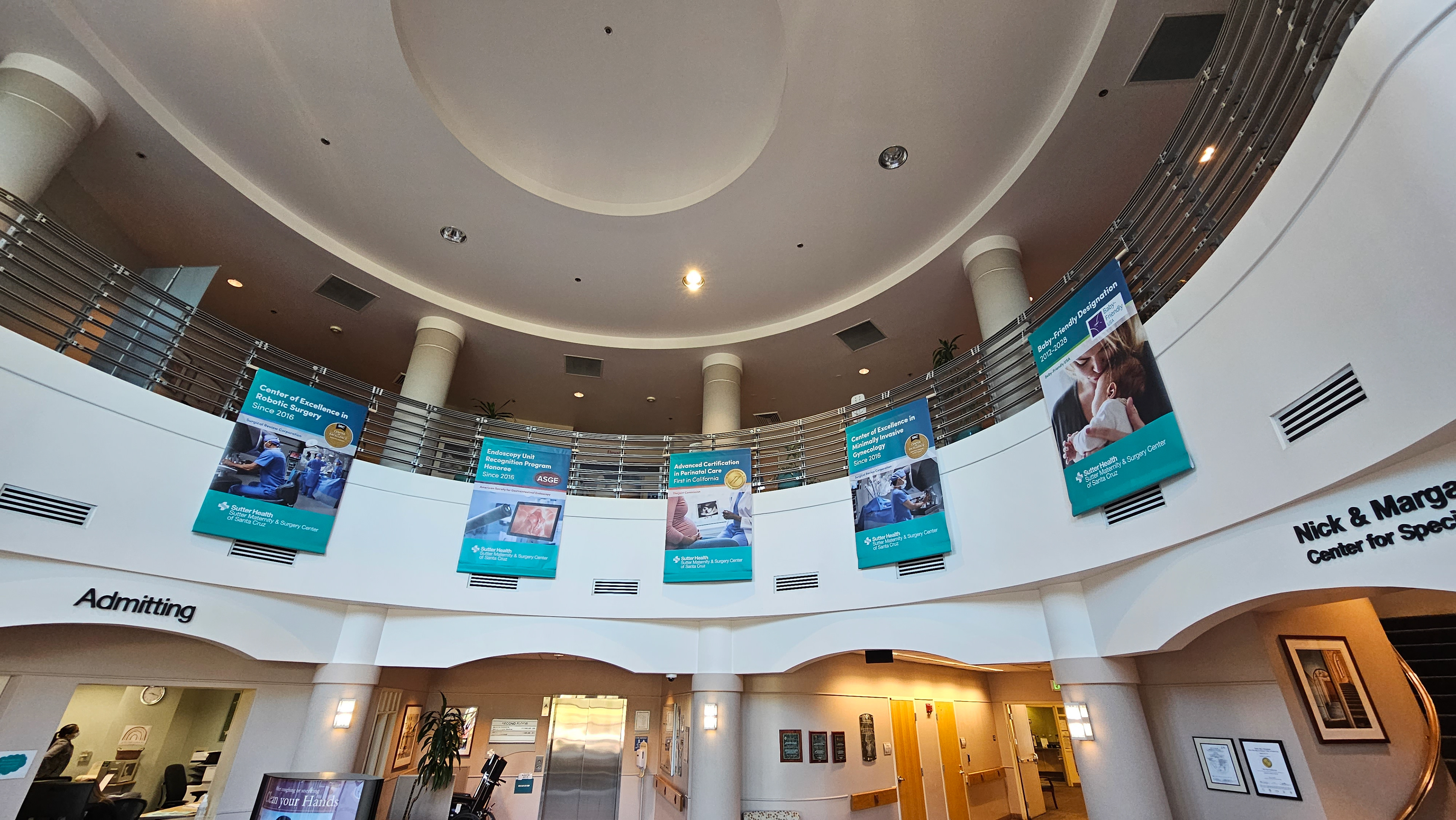 Hanging banners for Sutter Maternity & Surgery Center in Santa Cruz ambulatory care center showcasing their excellence in various specialized service lines.